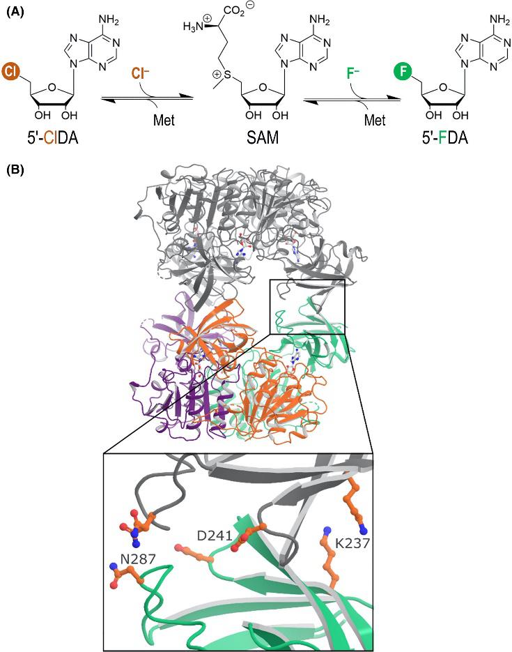 Kittilä, T., Calero, P., Fredslund, F., Lowe, P. T., Tezé, D., Nieto-Domínguez, M., O’Hagan, D., Nikel, P. I., and Welner, D. H. 5. (2022) Oligomerization engineering of the fluorinase enzyme leads to an active trimer that supports synthesis of fluorometabolites in vitro. Microbial Biotechnology, DOI: https://doi.org/10.1111/1751-7915.14009