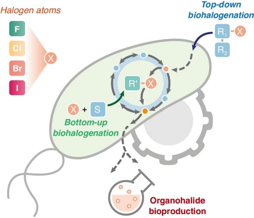 In this review article, Antonin, Alberto, Nico Wirth and Pablo discuss the importance of exploiting cell factories and synthetic biology for production of organohalides, as well as bringing to the table different strategies to achieve this goal.