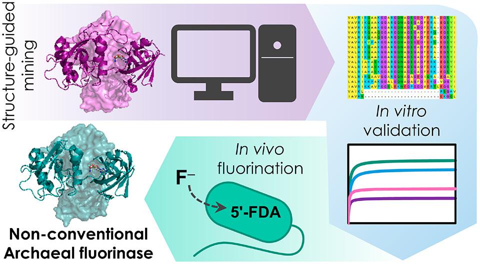 Pardo, I., Bednar, D., Calero, P., Volke, D. C., Damborský, J., and Nikel, P. I. (2022) A nonconventional Archaeal fluorinase identified by in silico mining for enhanced fluorine biocatalysis. ACS Catalysis, DOI: https://doi.org/10.1021/acscatal.2c01184