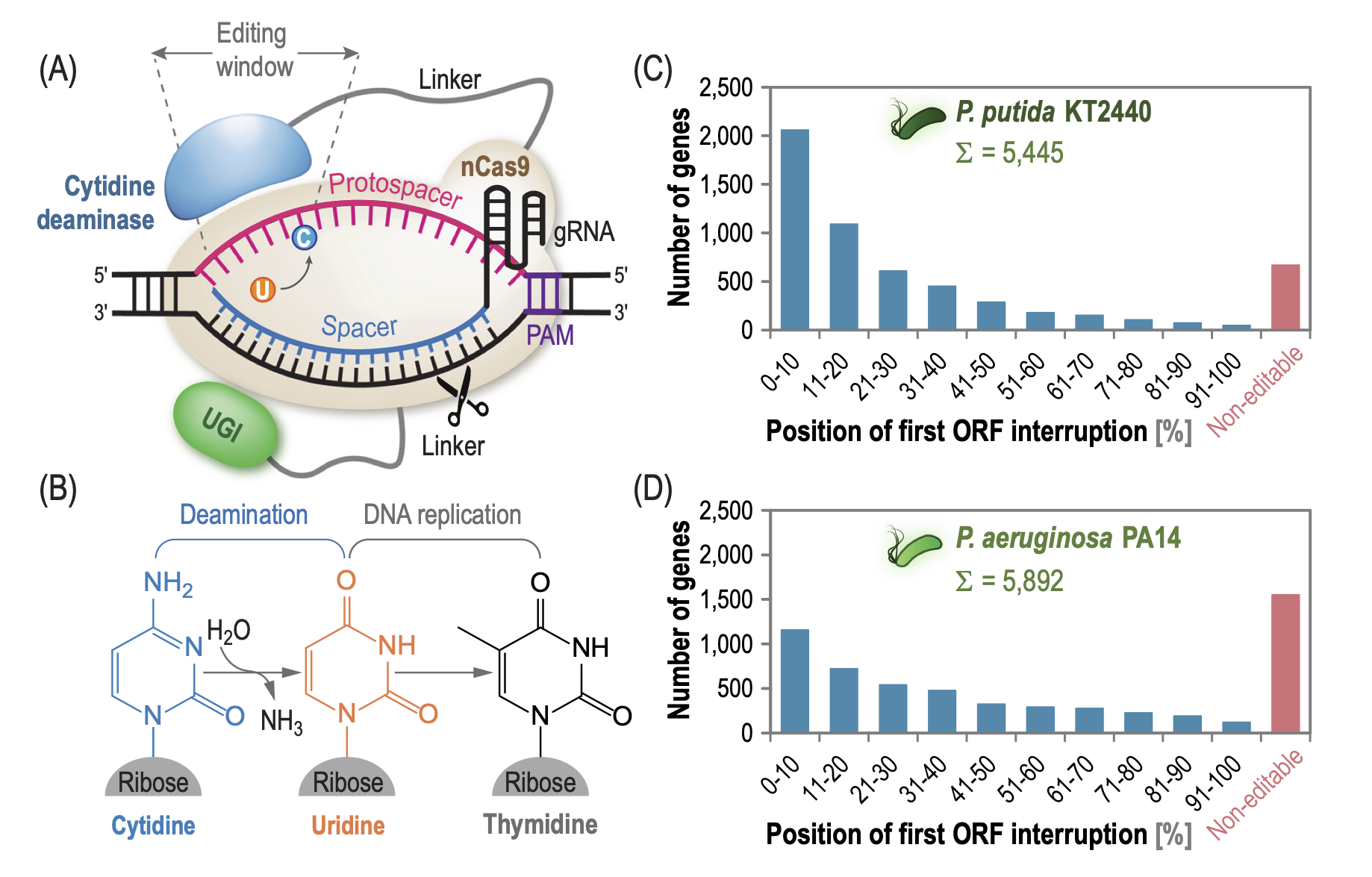 Volke, D. C., Martino, R. A., Kozaeva, E., Smania, A. M., and Nikel, P. I. (2022) Modular (de)construction of complex bacterial phenotypes by CRISPR/nCas9-assisted, multiplex cytidine base-editing. Nature Communications, DOI: https://doi.org/10.1038/s41467-022-30780-z